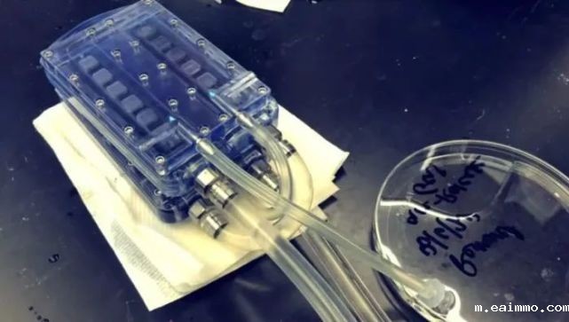 以前的测试已经让这些部分中的每一个独立工作,但这是该团队第一次测试它们在一个设备中串联工作。该生物人工肾连接到病人的两条主要动脉--一条将血液输送到体内过滤,另一条将过滤后的血液输送回体内--以及连接到膀胱,废物在那里以尿液形式沉积。